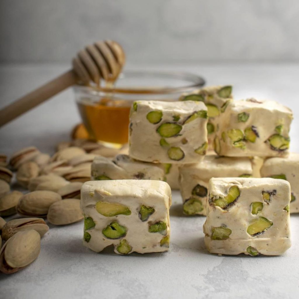 Contains 40% pistachio kernels, egg whites, rose water, glucose, sugar, drinking water Net weight of gaz in each package is